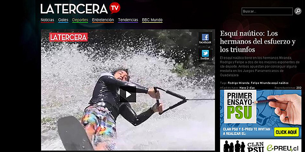 LOS MIRANDA EN LATERCERA.TV 12 septiembre, 2011 1-NOTICIAS La plataforma de videos del sitio www.latercera.com publicó esta semana un extenso reportaje a la preparación y expectativas de los hermanos Felipe y Rodrigo Miranda para los Juegos Panamericanos de Guadalajara 2011. Descarga aquí la nota: http://www.3tv.cl/index.php?m=video&v=20090