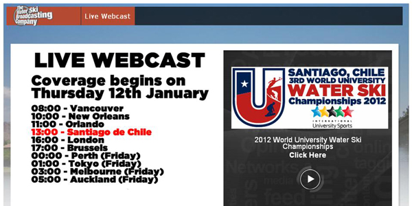 Si quieres seguir minuto a minuto el desarrollo del Campeonato Mundial Universitario de Esquí Náutico, Chile 2012 visita http://www.waterskibroadcasting.com/