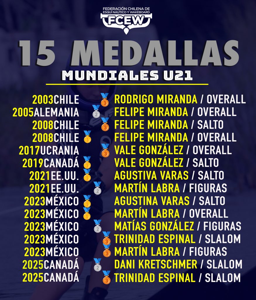En el Mundial U21 de Canadá 2025, Chile se presentó con un equipo de nueve esquiadores y logró acceder a seis finales. También tuvieron un paso destacado en este evento Dominga González (cuarta en slalom y sexta en figuras), Santiago Barrientos (sexto en salto) y Emilia Méndez (séptima en salto).