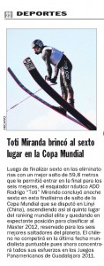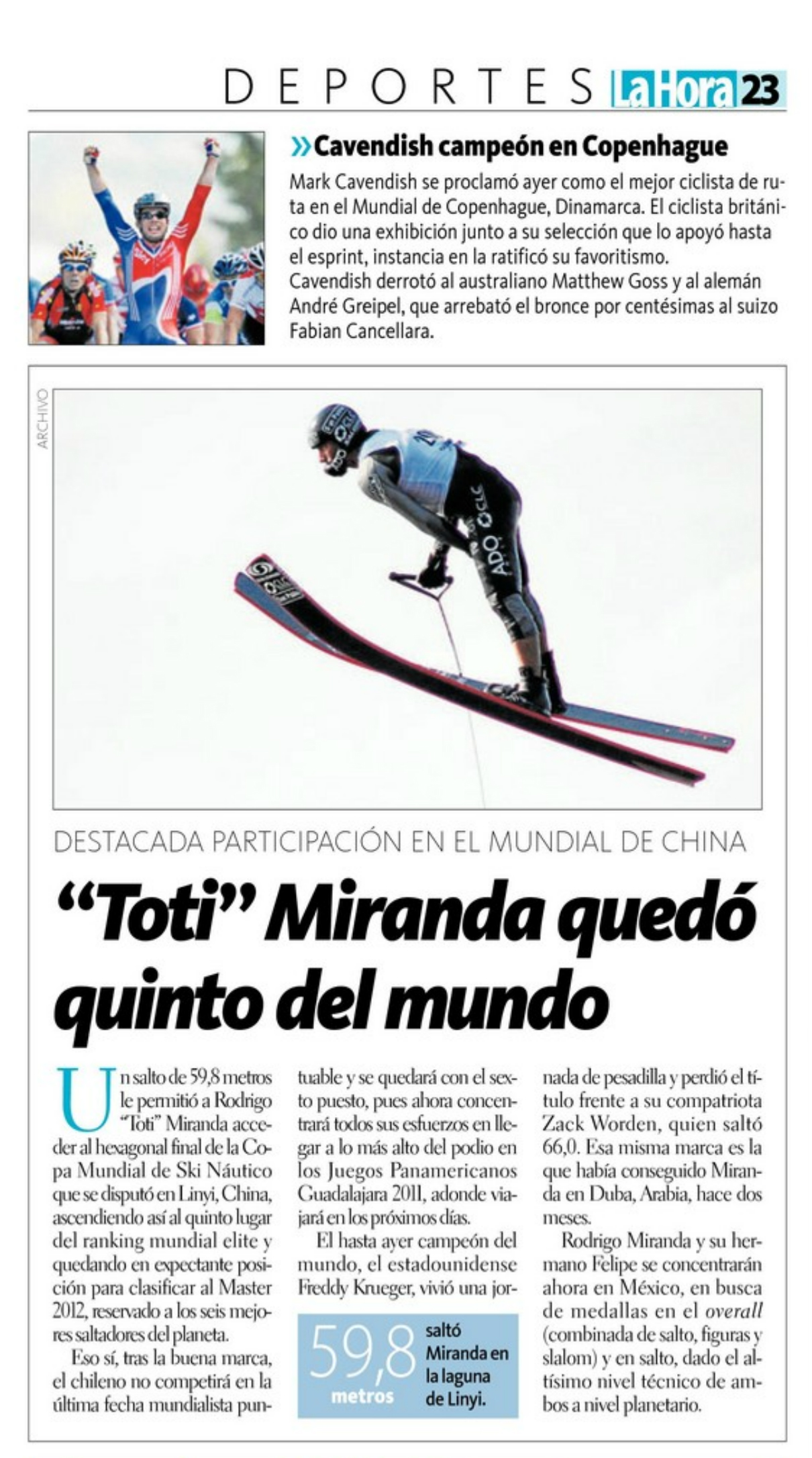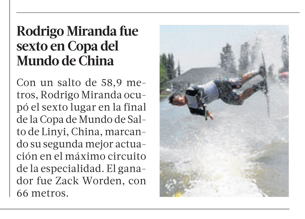 La actuación en China fue clave en las pretensiones de Miranda de asegurar su lugar en la versión 2012 del US Masters, el máximo torneo internacional del esquí náutico y en el que sólo pueden actuar los primeros seis esquiadores del Ranking Elite.