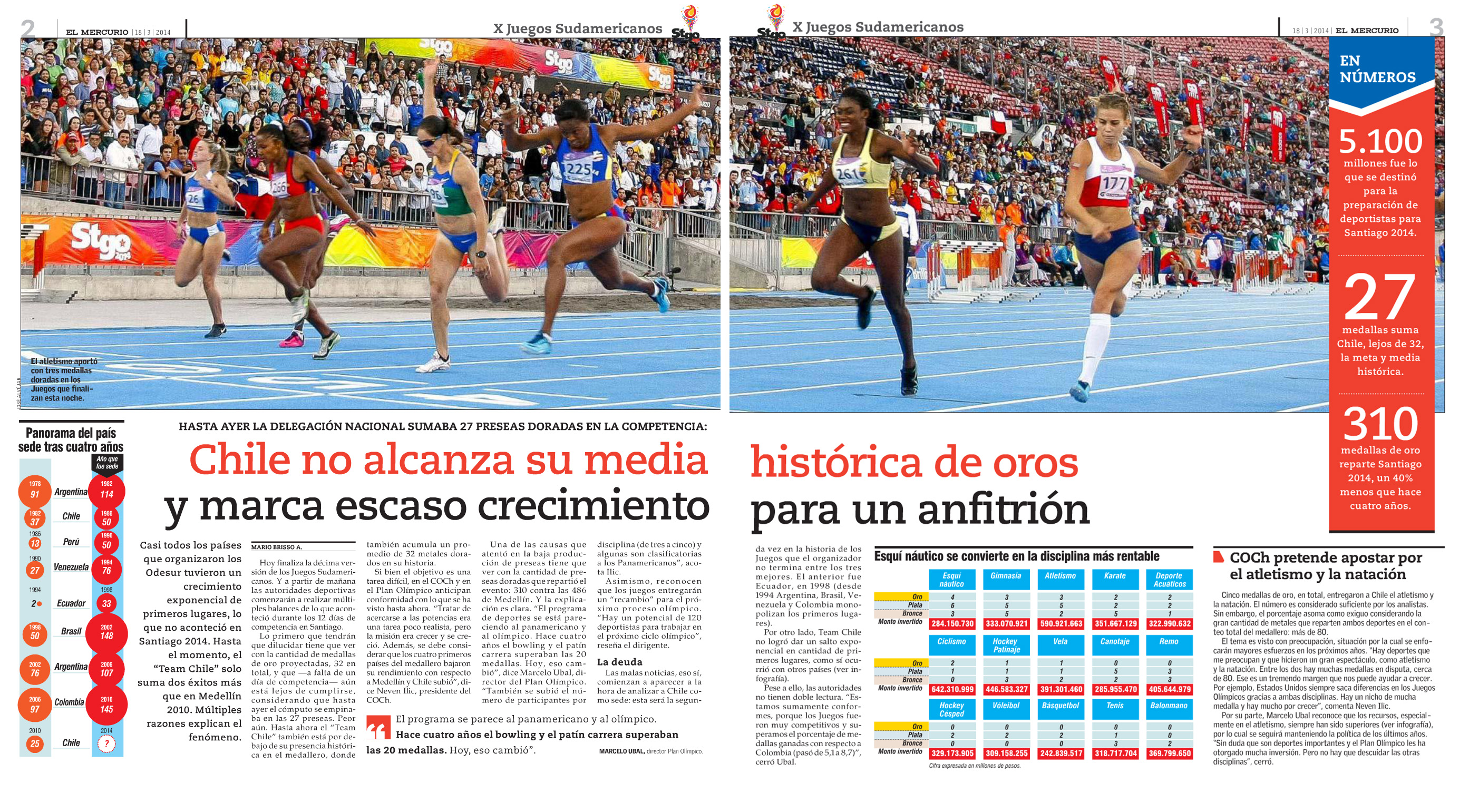 Según los datos que entregó el diario el esquí náutico recibió poco más de 284 millones de pesos para preparar a sus atletas para los Juegos Odesur, lo que este deporte retribuyó con 4 medallas de oro, 6 de plata y 3 de bronce, siendo con 13 medallas, el deporte que más preseas le entregó a la cosecha chilena en Santiago 2014.