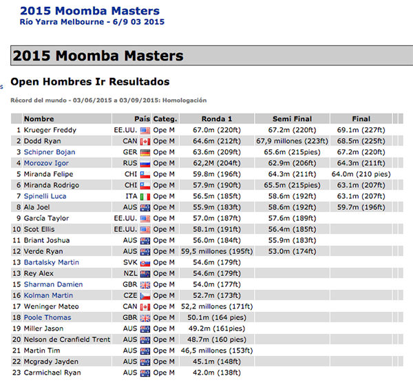En la instancia decisiva los campeones latinoamericanos mantuvieron sus registros en relación a la semifinal lo que no fue suficiente para acercarse al podio que estuvo liderado por el estadounidense Freddy Krueger con 69,1 metros.