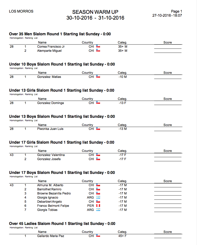 La Federación de Esquí Náutico de Chile informó este jueves las listas de salida del torneo Season Warm Up, certamen que abrirá oficialmente la temporada 2016-2017.