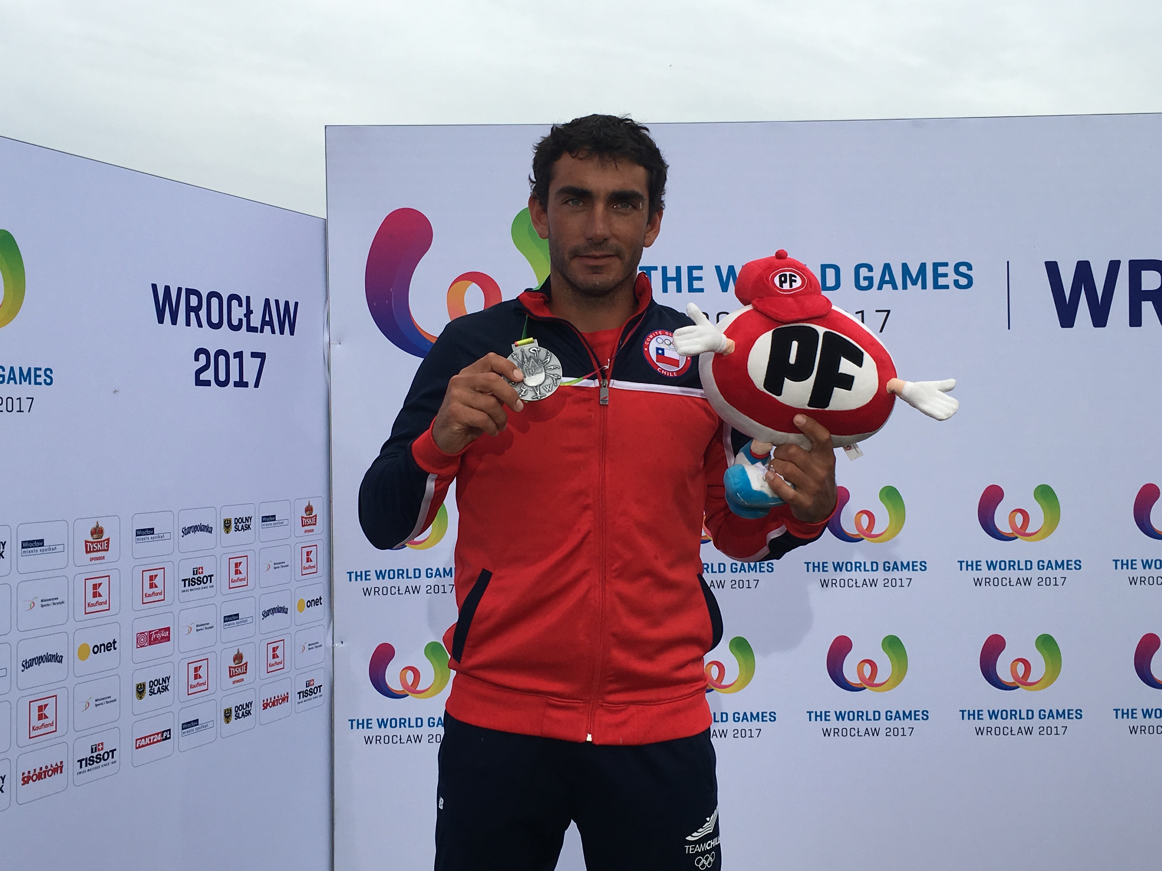 Rodrigo Miranda, el número 5 del Ranking Mundial, logró su cuarta medalla consecutiva en los World Games al ganar esta mañana la presea de plata en la final de salto. El campeón chileno brincó 62,8 metros y se ubicó detrás del alemán Bojan Schipner (3) que ganó la prueba con 64,6, mientras