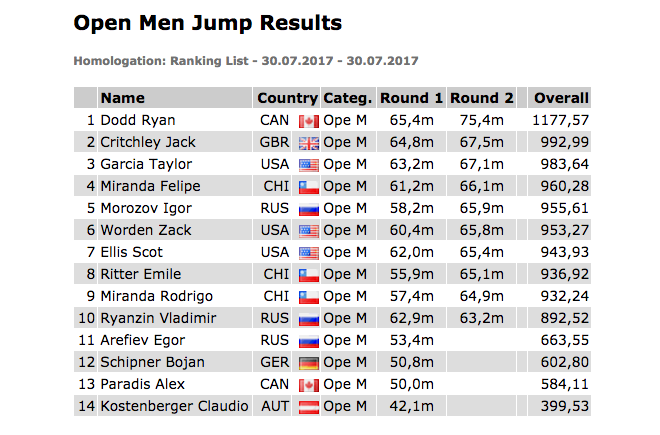 El seleccionado nacional, Emile Ritter, tuvo una gran actuación en el Circuito Mundial de Rusia, donde logró un salto de 65,1 metros, su mejor marca personal en su carrera, superando los 64,6 que registraba.