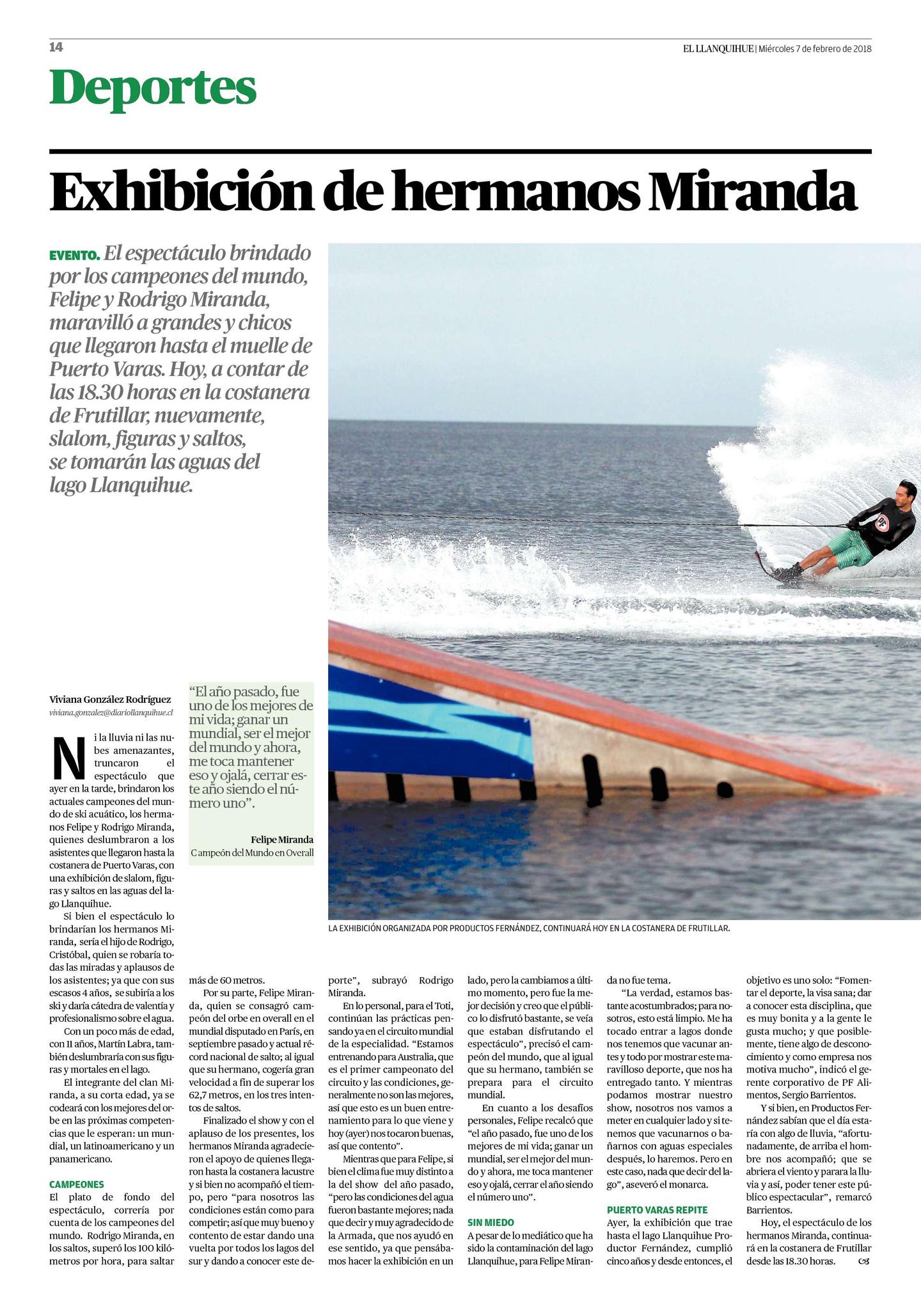 La exhibición de los hermanos Miranda en el sur es patrocinada por la Federación de Esquí Náutico de Chile y auspiciada por PF.