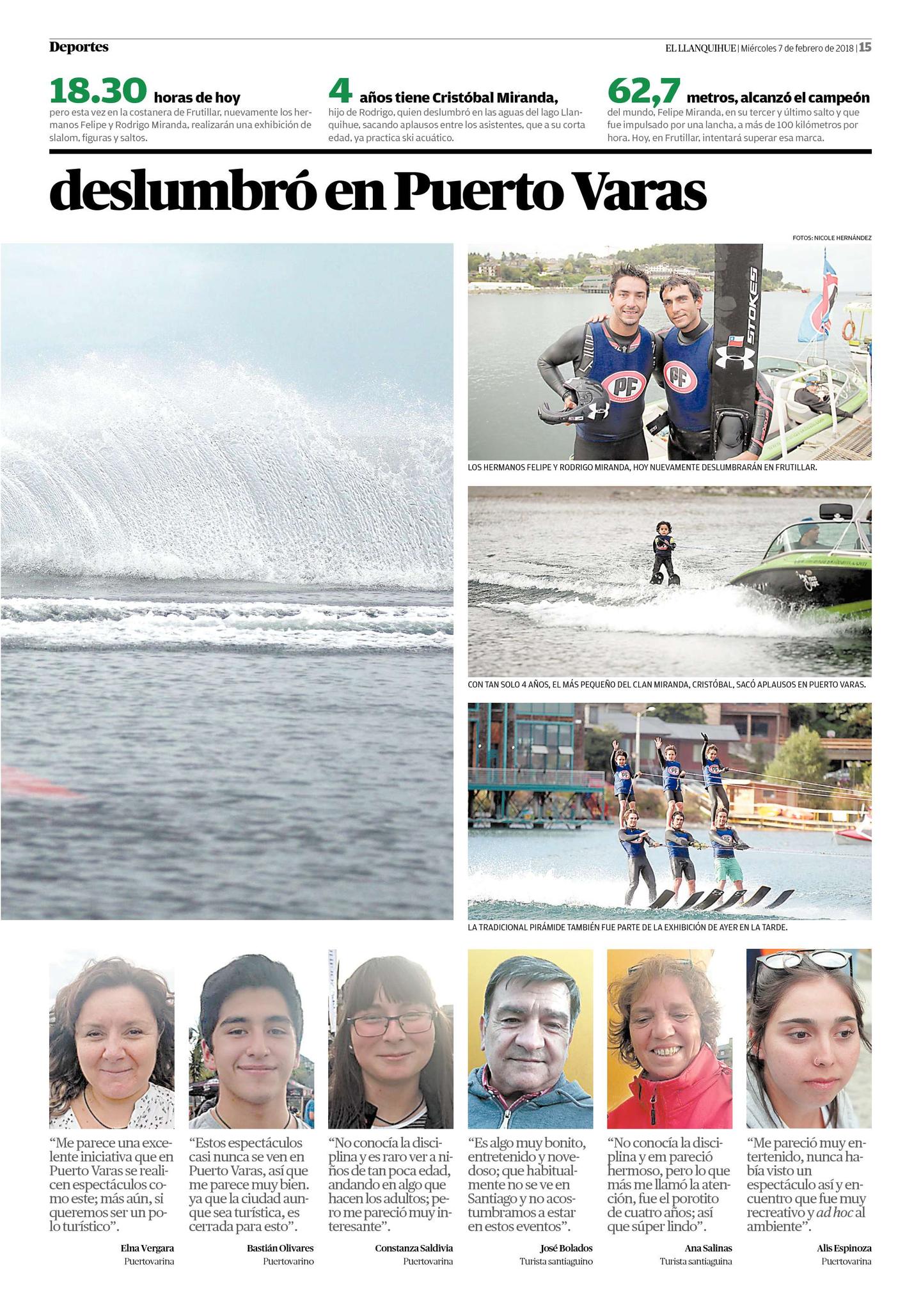 Vichuquén, Puerto Varas y Frutillar han quedado maravillados con la exhibición de esquí náutico que han brindado por quinto año consecutivo los hermanos Rodrigo y Felipe Miranda.