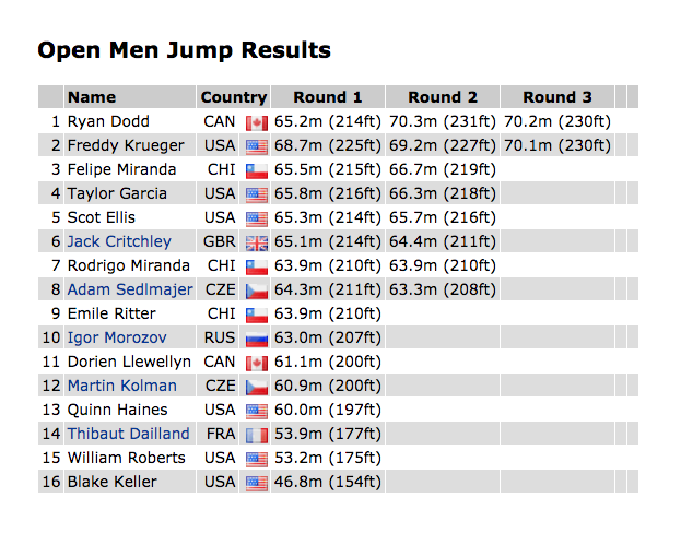 Las buenas condiciones del lago y el buen momento que actualmente atraviesa el mejor esquiador latinoamericano hicieron posible que conservara el lugar en la final, pese al gran repunte de Ryan Dodd, que ganó la competencia con un increíble salto de 70,2 metros.